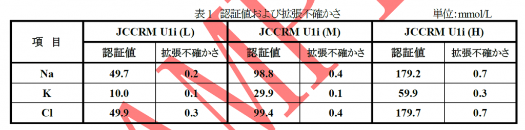 JCCRM-U1尿中电解质测定用标准物质认证值