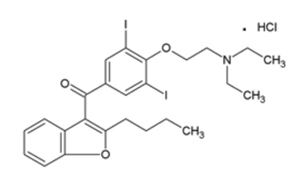 Amiodarone, marketed as Pacerone, Cordarone, Aratac, and Atlansil, is an antiarrhythmic agent monitored by clinical labs using HPLC or LCMS to ensure patients remain within the drugs therapeutic range.Amiodarone HCl