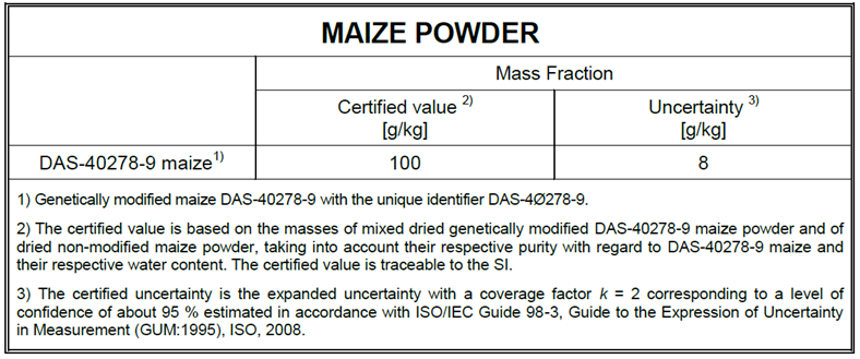 ERM-BF433d 转基因玉米DAS-40278-9(10 % GMO)标准物质使用说明和预期用途–ERM-BF433d只能用于食品和饲料中转基因DAS-40278-9玉米的鉴定和定量方法的校准或质量控制。干燥的CRM粉末具有吸湿性。