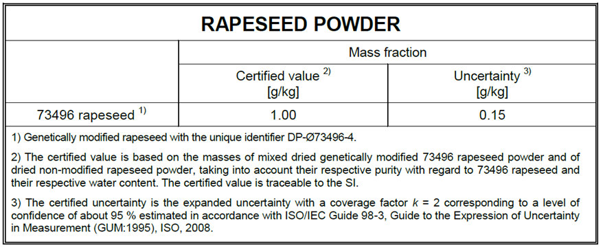 使用说明和预期用途–ERM-BF434c只能用于食品和饲料中转基因73496油菜籽的鉴定和定量方法的校准或质量控制。干燥的CRM粉末具有吸湿性。