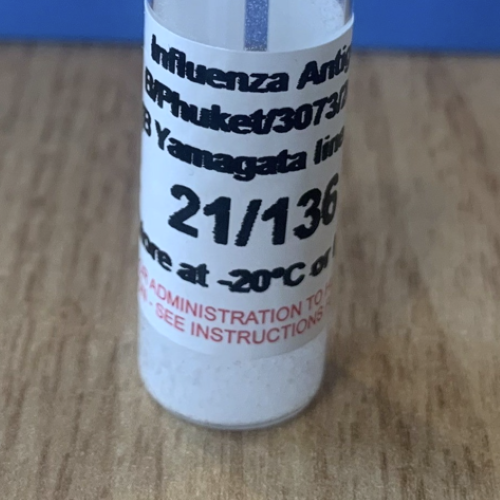 生物材料的原产国:英国。抗原试剂21/136由福尔马林灭活、部分纯化的B/Phuket/3073/2013蛋源病毒制备,该病毒悬浮在含有1%(w/v)蔗糖的PBSA缓冲液中,并按照以下所述进行冷冻干燥处理:该试剂已按照用于生产在欧盟注册的人流感疫苗的验证程序灭活。根据欧洲药典药典测定法(专论0158)的测试,这种灭活试剂已被证明不含残留的感染性病毒。