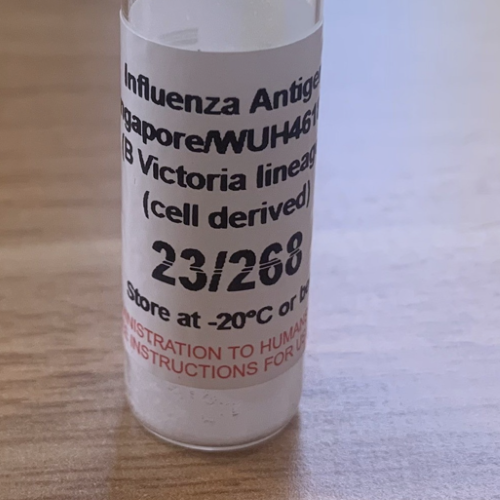 流感抗原B标准品WUH4618/2021生物材料的原产国:英国。抗原试剂23/268由在细胞中生长的甲醛灭活、部分纯化的流感抗原B/Singapore/WUH4618/2021病毒制备,该病毒悬浮在含有1%(w/v)蔗糖的PBSA缓冲液中,并按照以下所述进行冷冻干燥处理: