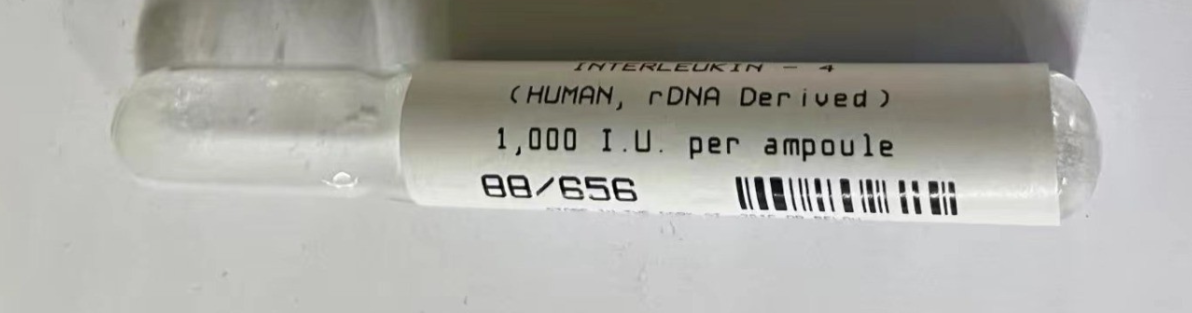 每个安瓿含有冷冻干燥的残留物,其在氮气气氛下包含:IL-4,约100 ng 4.5 mg氯化钠0.5 mg海藻糖1.0 mg人血清白蛋白。IL-4蛋白在CHO细胞中表达。